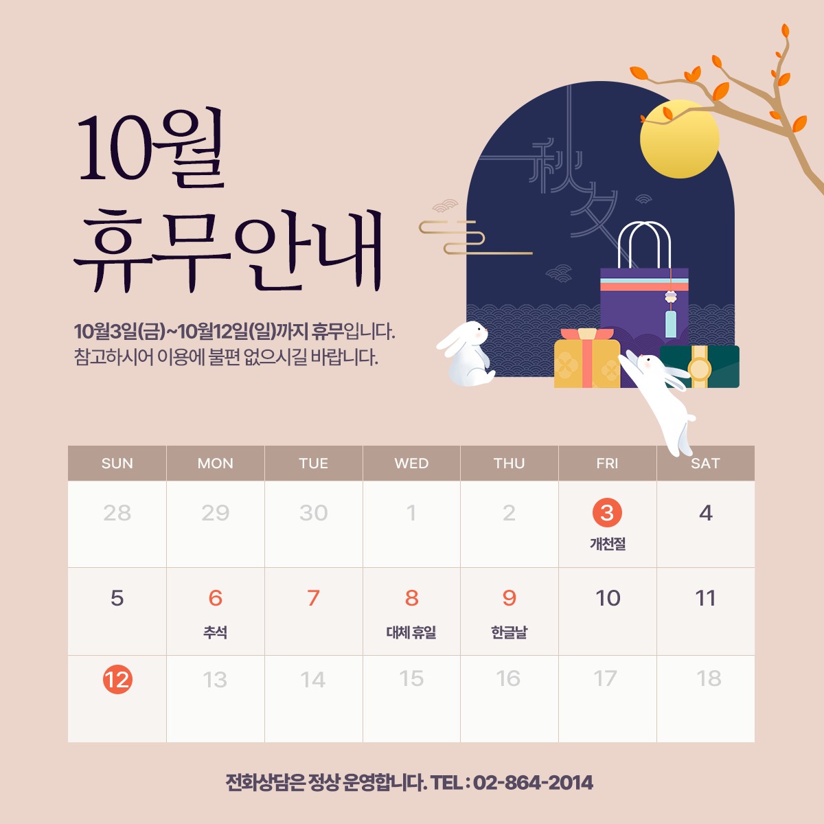 10월 휴무 공지입니다. [ 2025-09-22 06:36:43 ]